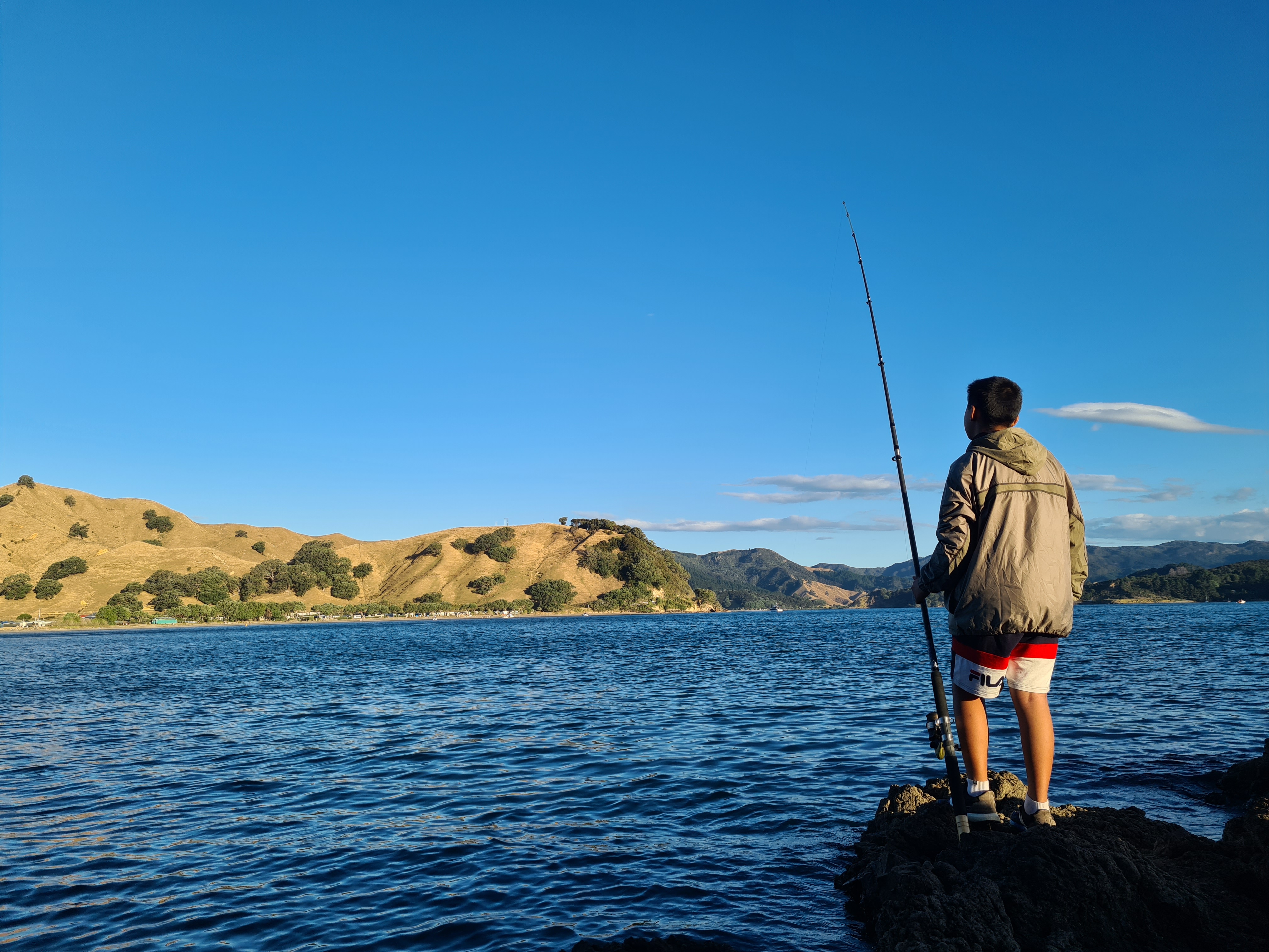 둘쨋날 5시30분 알람에 맞춰 일어났습니다. 어젯밤에 아이들 데리고 늦게까지 별 본다고 설치지 않은 이유는 따로 있었습니다. 새벽에 일어나서 혼자 낚시 가려고... 얼른 밖으로 나와서 시동을 걸고 조용히 캠핑장을 빠져 나왔습니다. 애초에는 어제 초저녁에 다현이랑 낚시대를 던졌던 와프에서 할까 했으나, 이왕이면 확률이 좋은곳으로 가보자 하고 잠자기 전에 구글맵으로 찍어놨던 곳으로 운전해 갑니다. 코로만델 반도 어징간한 갯바위나 비취는 모두 100점짜리 낚시터로 보입니다. 캠핑장에서 10분정도 더 북쪽으로 올라간곳에 적당한 조약돌 비취를 찾았습니다. 주변은 이미 밝아오기 시작했고, 아직 잠이 덜 깬 듯 보름달이 12시 방향에 걸려 있습니다.