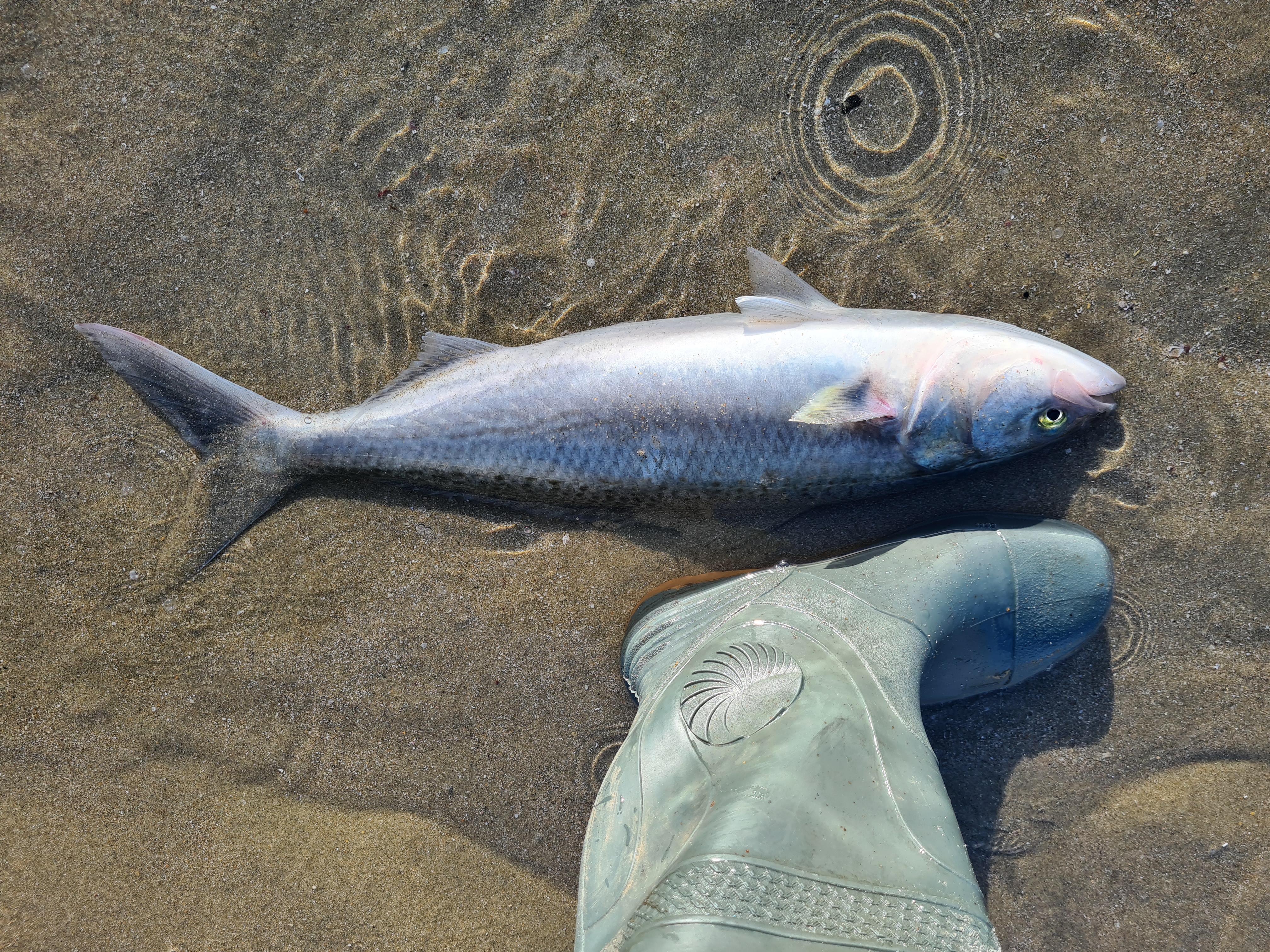 자리 추첨에서 밀려 안쪽으로 많이 들어간 곳에 자리를 잡았다. 10km 정도 되는 백사장 어디에 자리를 잡으면 어떠하랴만 내 가 앉은 곳이 제일 좋은 포인트려니 생각하고 재빨리 원투 채비를 던져 넣었다. 처음 미끼는 예전에 쓰다가 남아서 냉동실에 넣어놨던 필차드를 좀 작은 사이즈로 잘라서 가지 채비에 달았다. 웬걸? 캐스팅 후 5분도 지나지 않아 심하게 휘어지는 낚싯대. 오랜만에 좋은 손맛을 보며 힘차게 끌어올려 보니 큼지막한 가와이다. 주변 선수들의 부러운 눈빛을 받으며 두 번째 캐스팅. 이번 미끼는 앤초비. 그다음에는 오징어. 다음은 홍합, 다음엔 필차드.