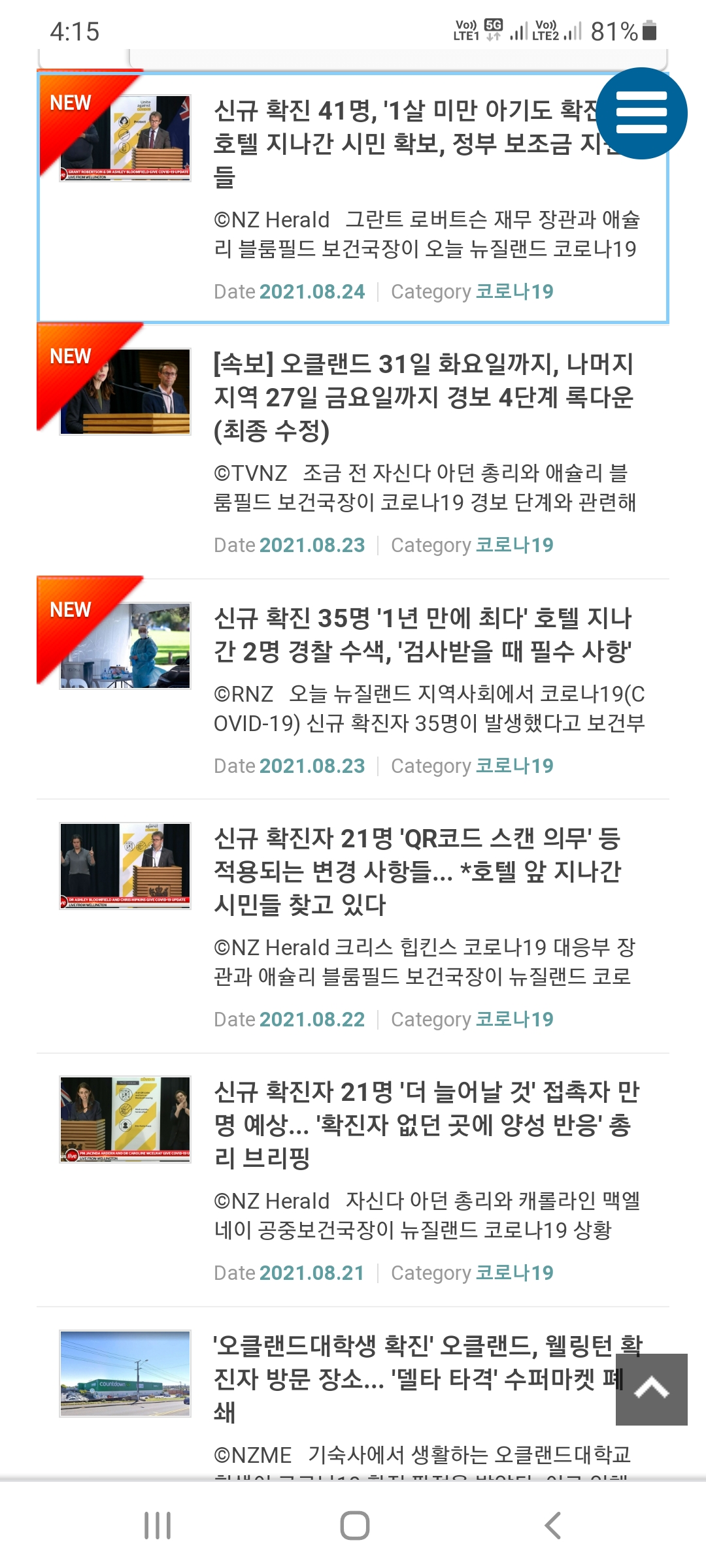 세계 여러나라들이 이미 심각한 수준으로 하루평균 70만 정도로 코비드 환자가 늘어나고 있다. 뉴질랜드도 언제까지 예외로 청정지역으로 머물 수 는 없을 것이다. With 코로나 시대를 준비 중인데... 극단적인 사태를 최대한 피하면서 대처력을 높이기 위해 노력할듯...