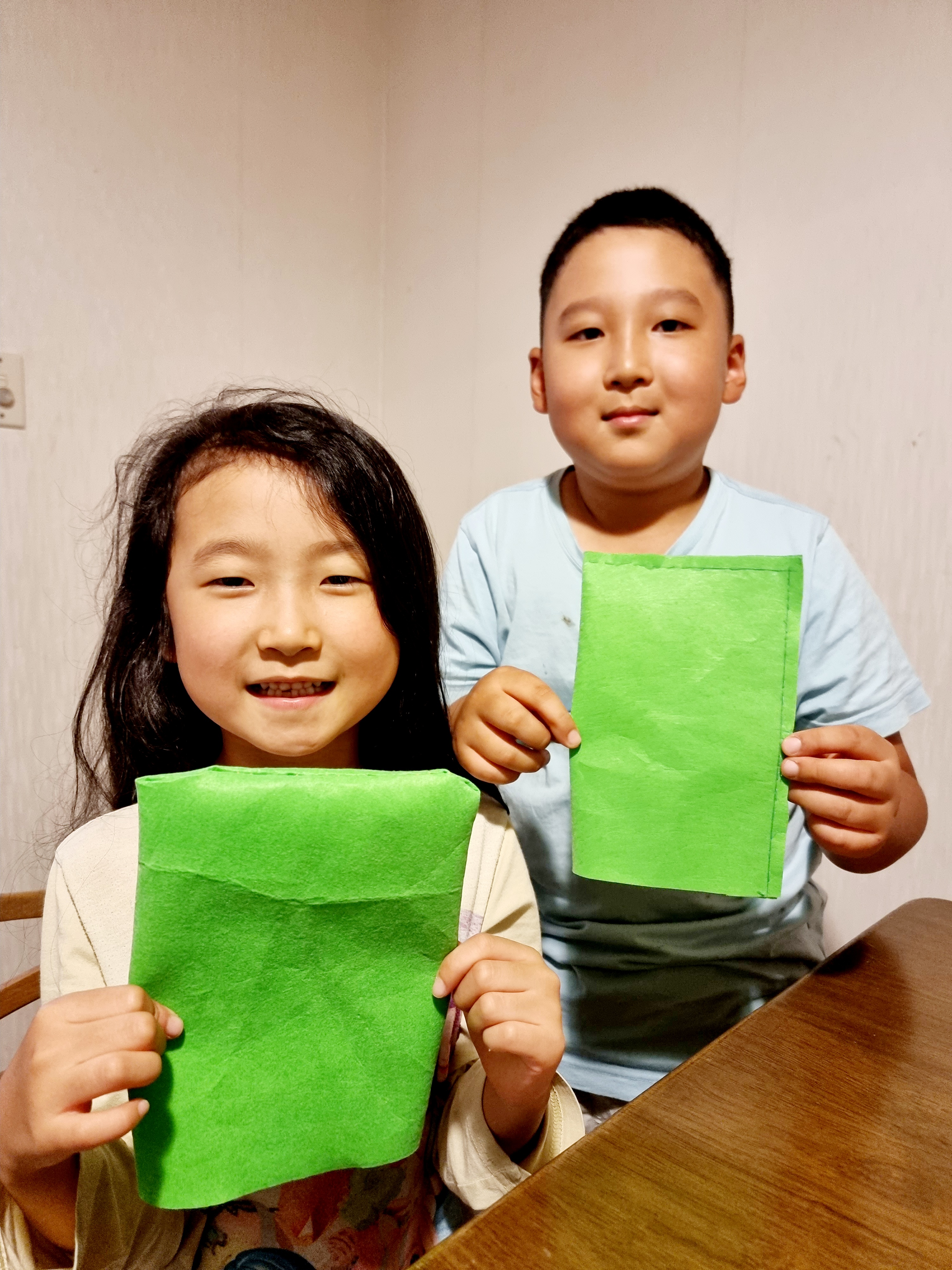 아무튼... 다민이와 다래가 바느질을 잘 마무리 했습니다. 오늘은 주머니 만들기까지만 하고, 다음번에는 손잡이 다는것과 주머니 앞뒤에 장식을 붙이기로 합니다.