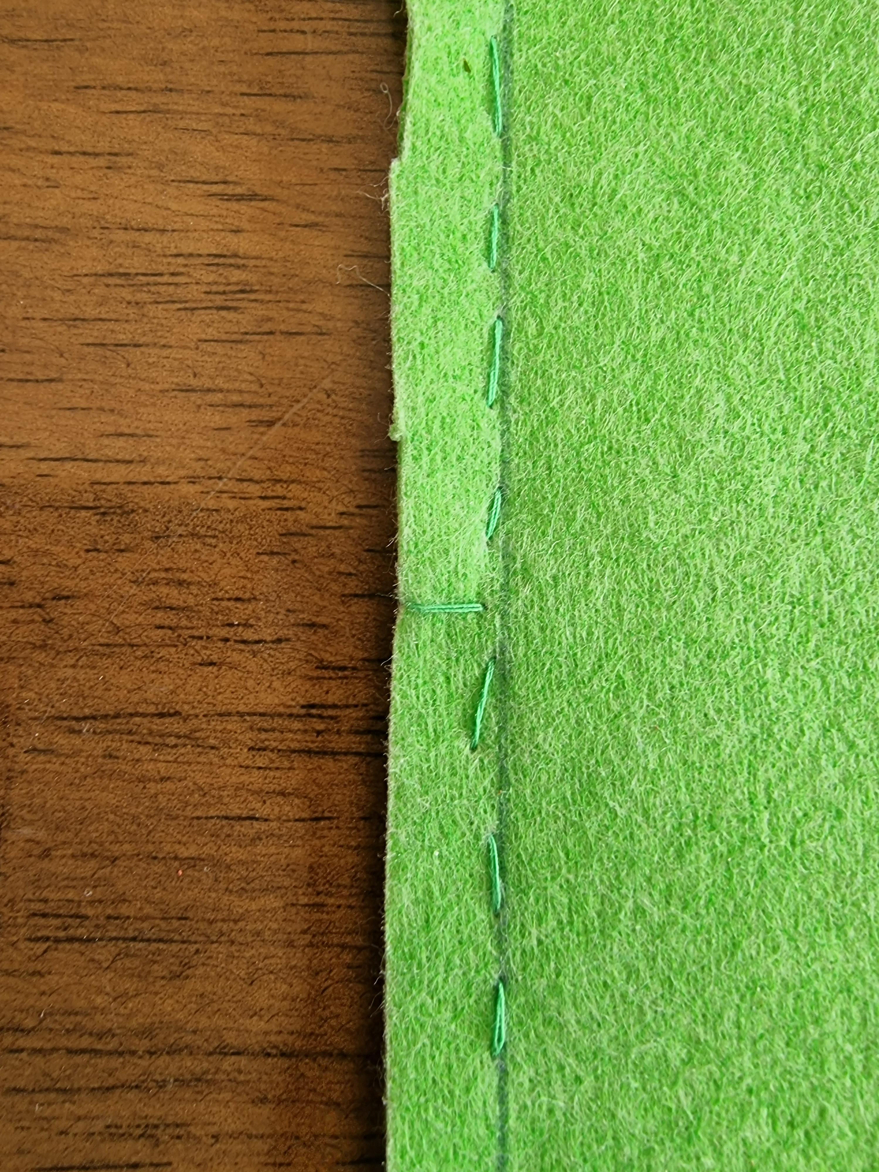 선생님께 뭘 배웠느냐고 물어보니, Running Stitch와 Blanket Stitch를 배웠다고 하면서 내게 설명을 시작합니다. 대충 들어보니 러닝이라는 방법은 직선으로 한땀한땀 건너뛰는 방법 같고, 블랭킷이라는 방법은 가장자리를 감싸고 도는 바느질 방법 같습니다.