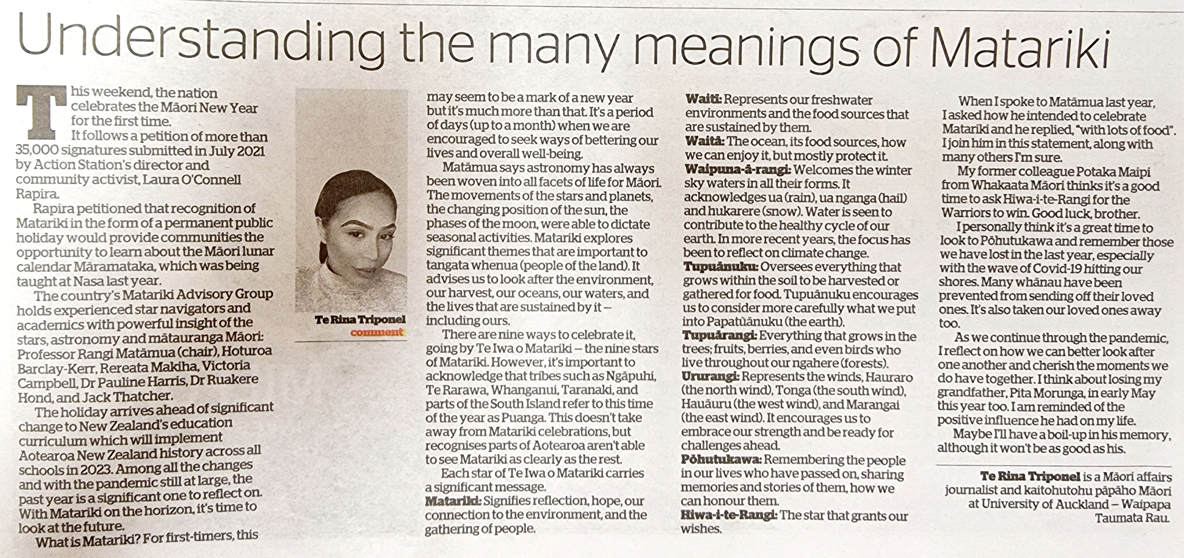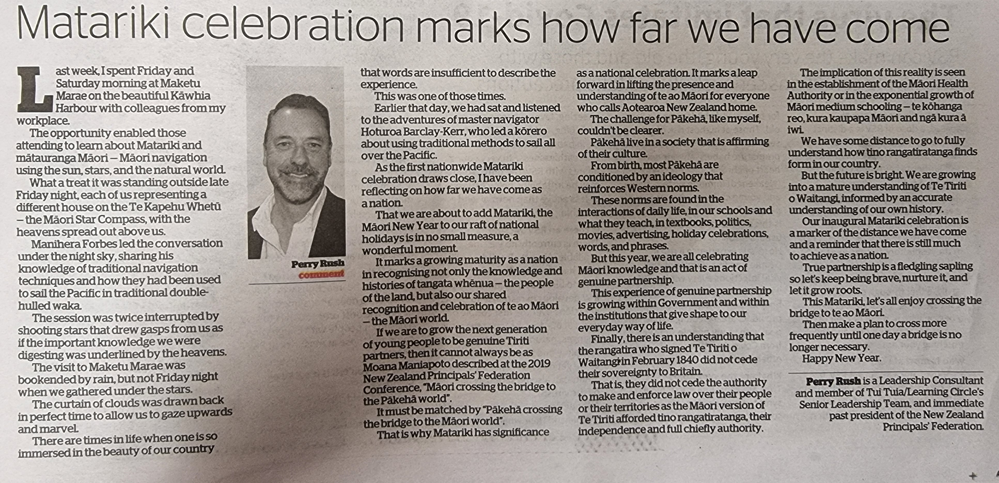 오늘은 마오리 설날 Matariki day이다. 여기에 대해 신문에 기고문이 하나 실려있는데 눈에 띄어서 옮겨온다. 좋은 글이다.