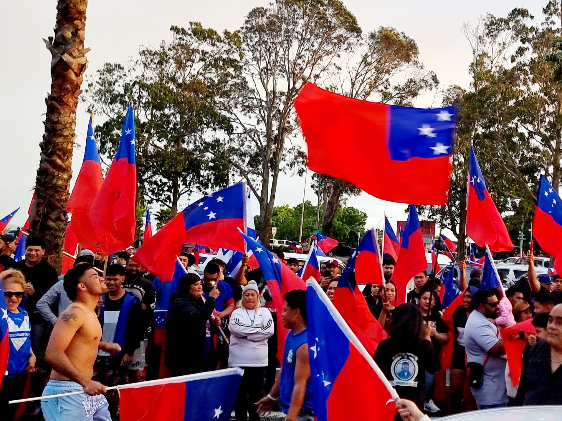 현장 시간 새벽 6시입니다. 옆 사람에게 물어보니 4시부터 나오기 시작했답니다. 삼삼오오 걸어서 모여드는 사람들 손에는 죄다 사모아 국기가 들렸고, 오늘을 위해 준비한 듯 온갖 개조를 한 자동차들은 내외부 스피커로 누가 더 크게 음악을 울릴 수 있나 내기를 하는 것 같습니다. 모여든 인파는 자동차가 미쳐 내지 못한 소음을 마무리해야 하는 기세로 소리도 지르고 폭죽도 터트리며 광란의 몸짓을 합니다.