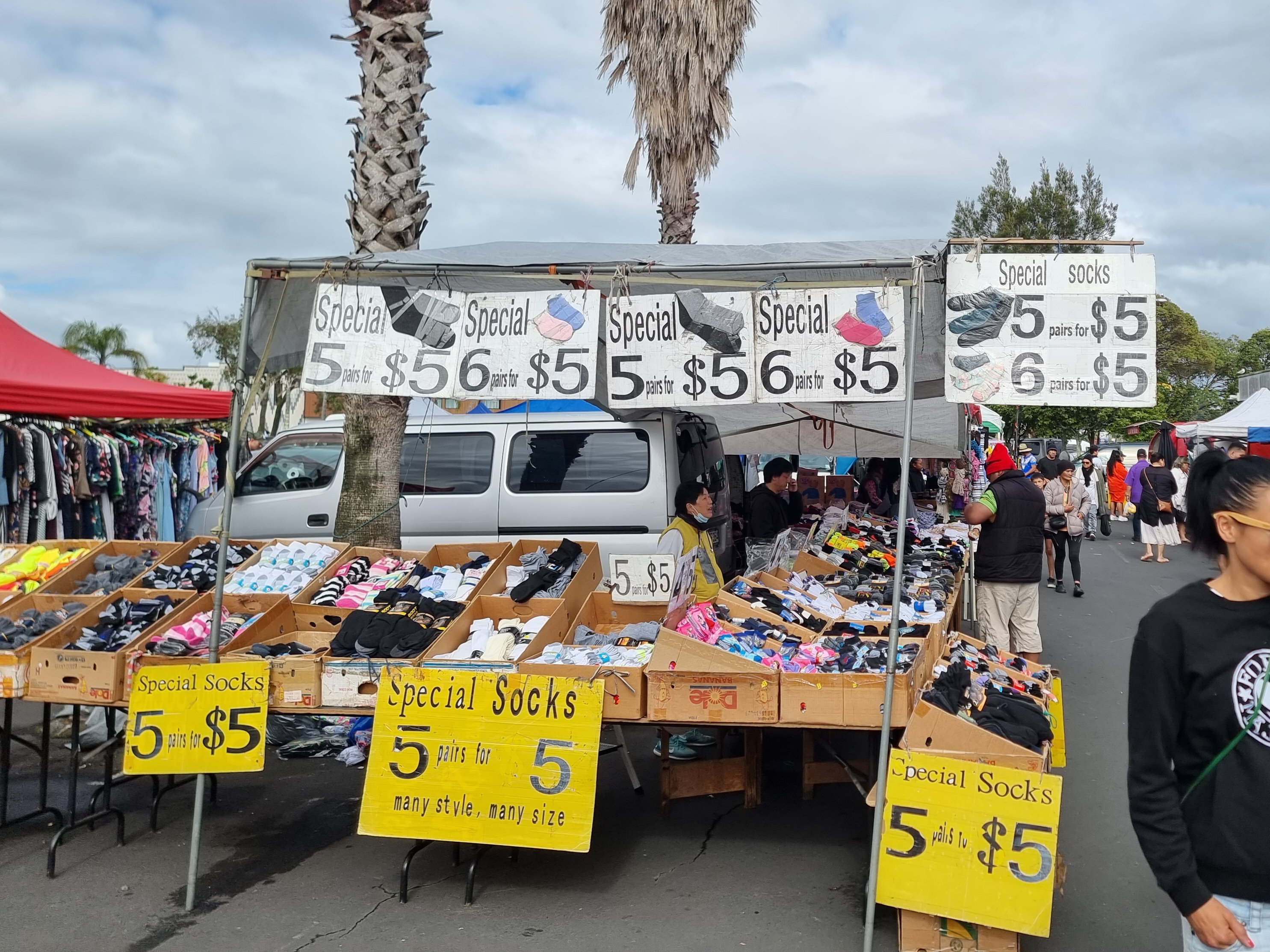 여기 'Mangere Towncenter Market'은 토요일에 열립니다. 적막할 토요일 아침 쇼핑몰 주차장이 온갖 상점들과 뭔가를 사러 나온 사람들로 북적이는 것은 대단한 장관입니다. 볼거리 중에서도 사람 구경이 제일 재미있습니다. 뭐랄까? 어느 날 열리는 올림픽 입장식을 보는 기분이랄까요? 전 세계 사람들이 다 모이는 곳. 입구에서 출신 국가 팻말을 목에 걸고 들어오게 한다면 아마도 50개 나라 이상 되지 않을까 싶습니다.
