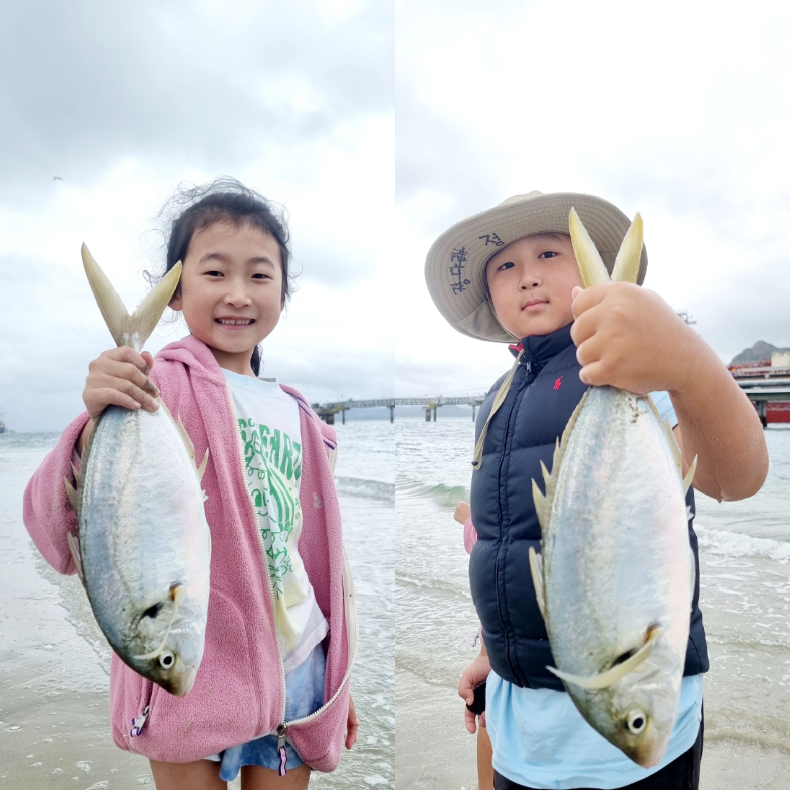점심 무렵이 되 아내가 다현이와 다래를 데리고 점심을 사러 나갑니다. 우리 가족이 마스덴에 오면 즐겨 먹는 피시엔 칩스를 사러 가는 것이지요. 다민이는 내 옆에 붙어서 열심히 낚싯대를 관찰하고 있습니다. 낚싯대도 만져보고 릴도 감아보고 관심은 많은데 고기가 안 나오는 게 흠입니다. 다행히 아빠 낚싯대에 트레발리가 한 마리 올라왔습니다. 대략 측정해 보니 45cm. 나쁘지 않네요.