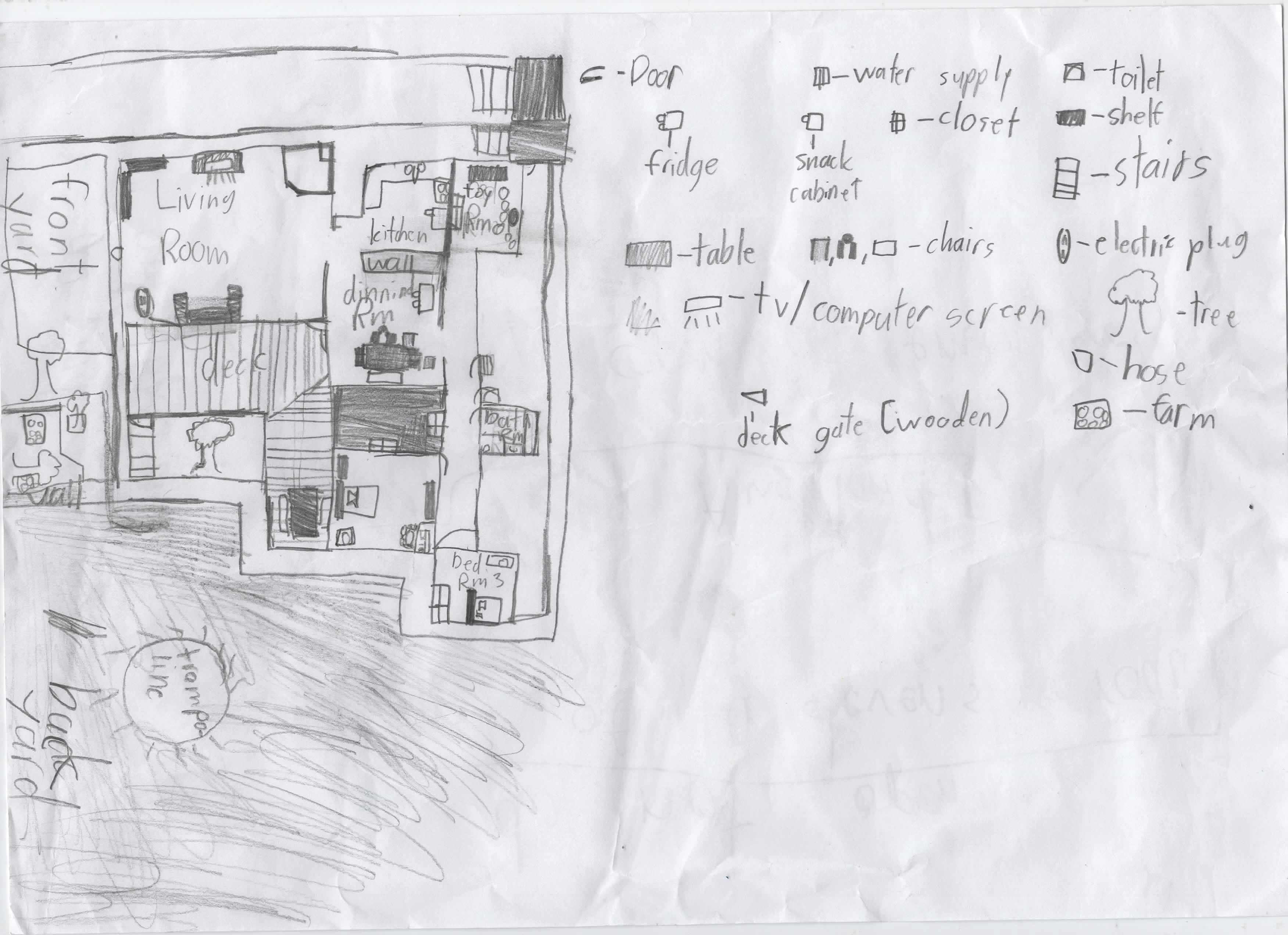 다른 하나는 형 다현이가 학교 과제 하는 걸 옆에서 보면서 자기도 그렸나 봅니다. 우리집 내부도면입니다. 얼마 전에는 아빠가 Loft Bed를 만들어야겠다고 했더니 스케치와 치수를 적은 설계도를 만들어서 보여줍니다. 이런 쪽으로 궁리하는게 재미있나 봅니다.