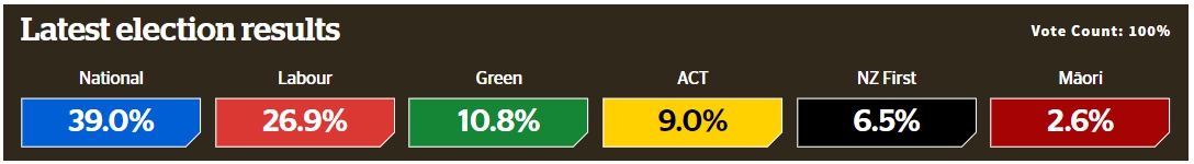 한편 이번 선거에서 크리스토퍼 럭슨(Christopher Luxon) 국민당 대표가 노동당의 6년 집권에 종지부를 찍고 차기 총리에 오르게 됐다.
