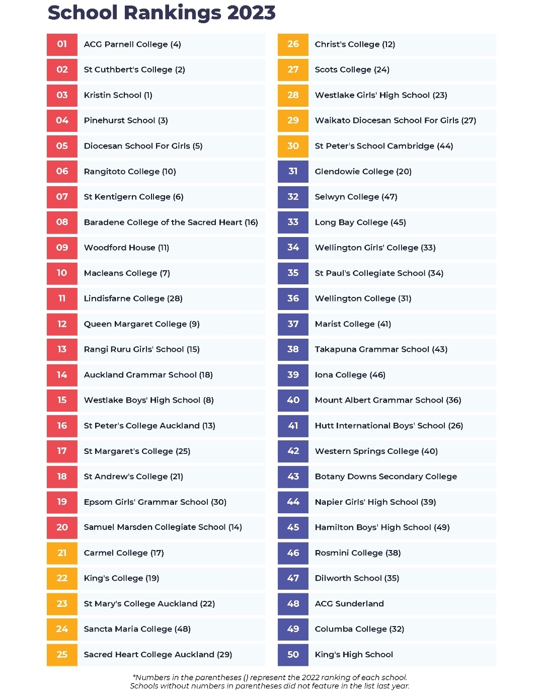 Top 50 New Zealand School 2023