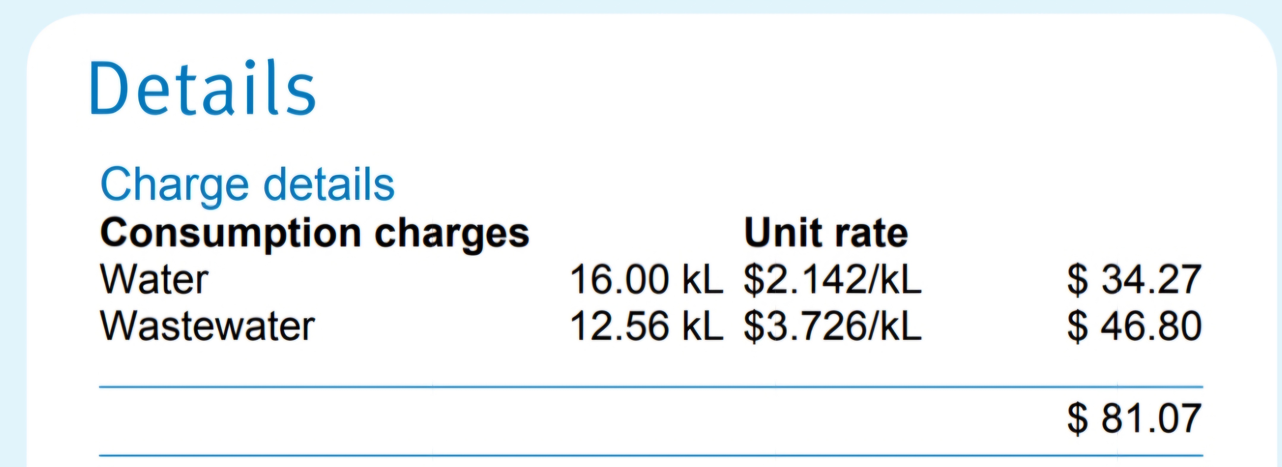 8월 물세 요금고지서가 왔다. (한국으로 치자면 한겨울인 1월) 뉴질랜드도 아직 겨울인 셈이고 비가 자주 내렸다. 물 사용량이 적은 달이였다.