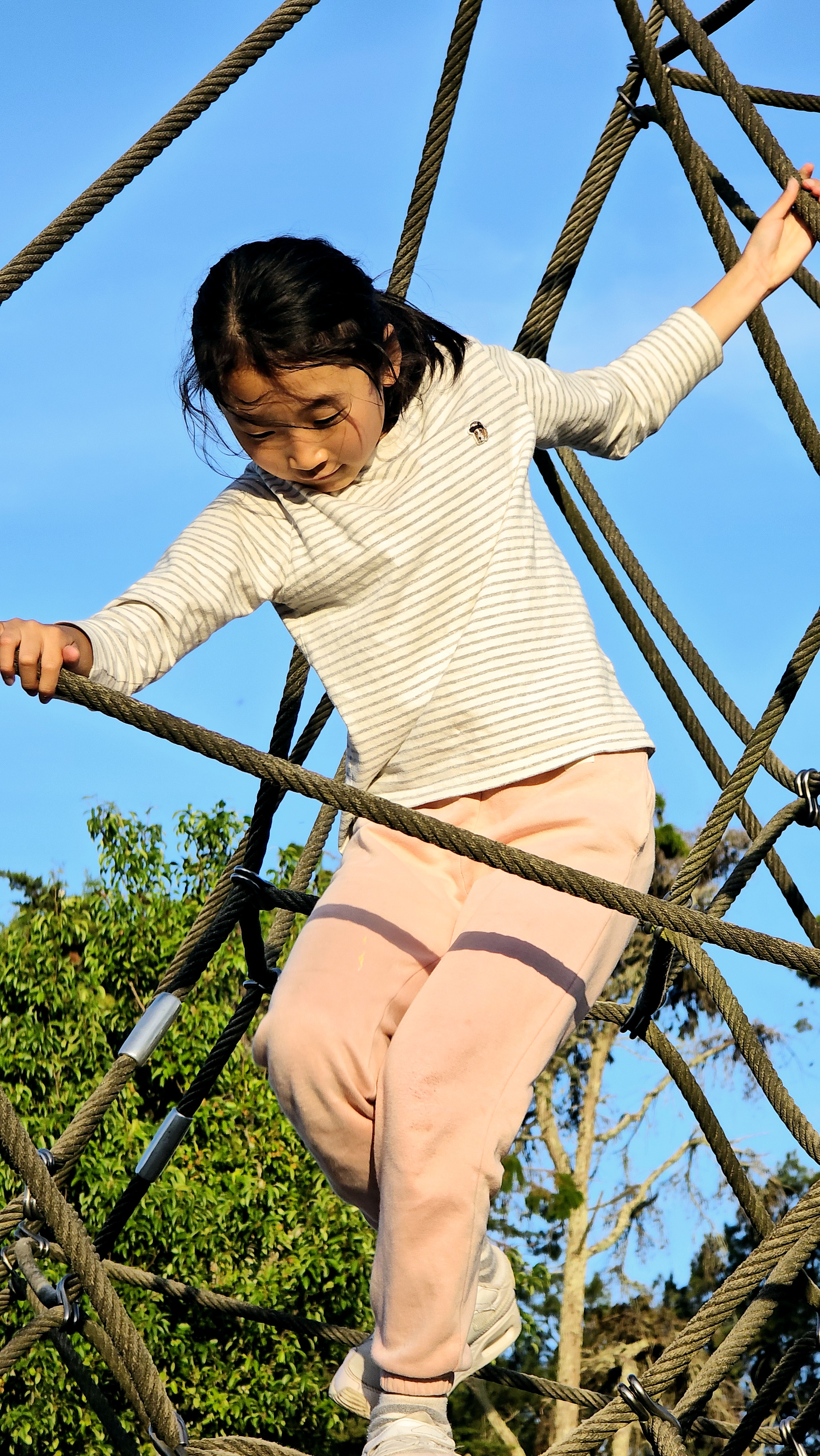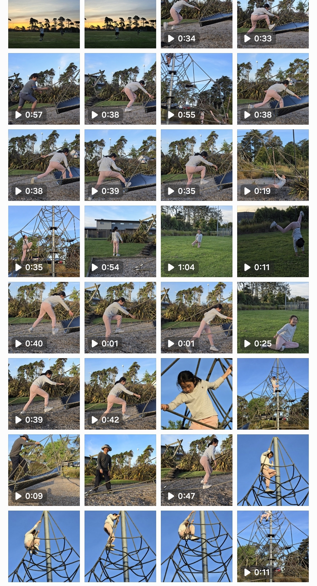 7시가 지나 해 질 무렵이라 아이들이 거의 없다. 혼자 그물나무에 몇 번 오르락내리락하더니 시간을 체크해달라고 한다.