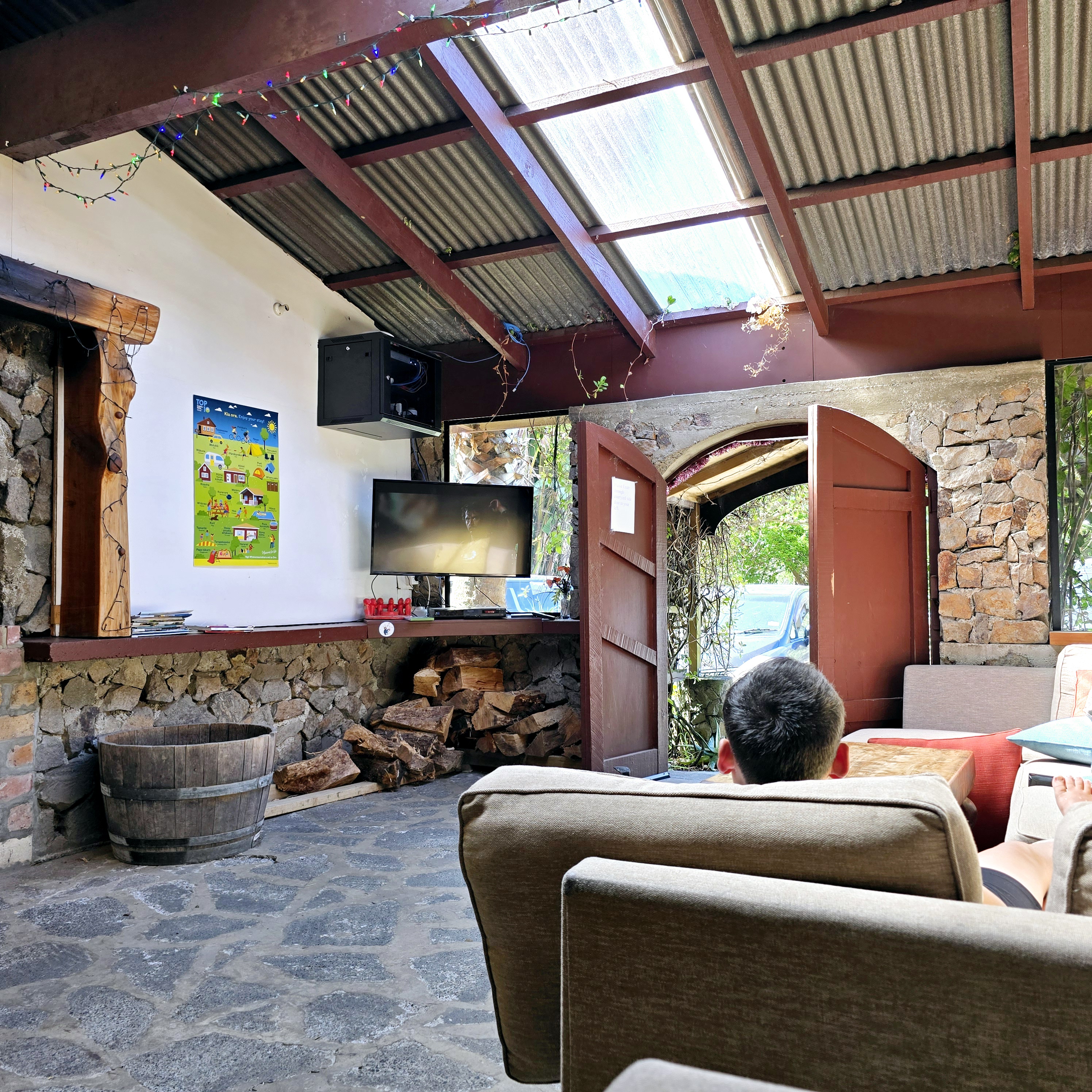 리셉션& 휴게실. 다민이가 읽을꺼리 볼꺼리를 찾고 있다.