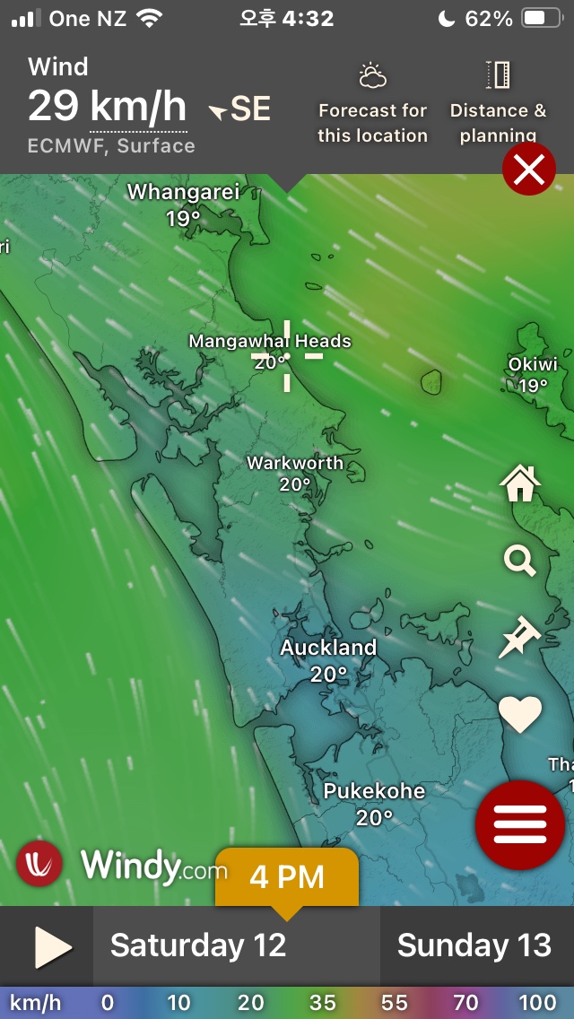 -바람 : 남동풍 23~29 km/h