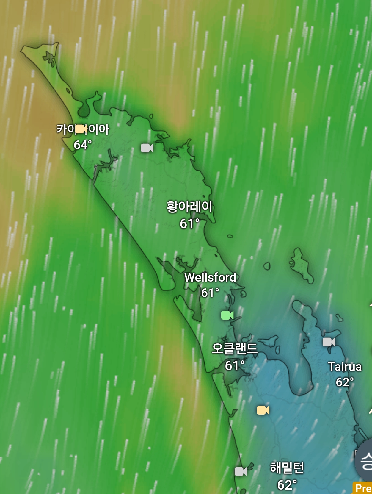 -바람 : 남동풍 23~29 km/h