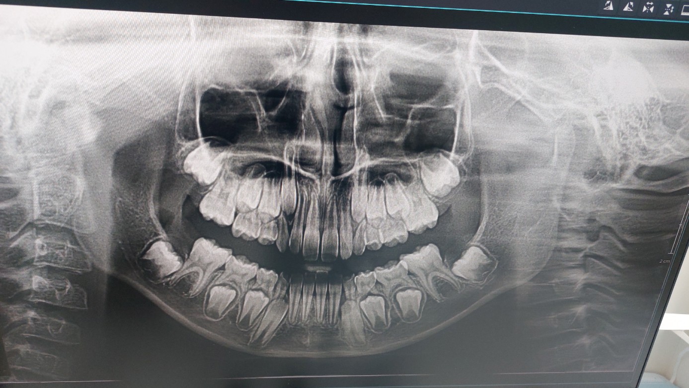 엑스레이 사진을 보니 아직도 빠져야 할 이빨이 많다. 놀랍게 오늘 저녁에도 이를 한 개 빼들고 나왔다. 어제 반대쪽이다. 겁 없는 소녀다. ㅎㅎㅎ