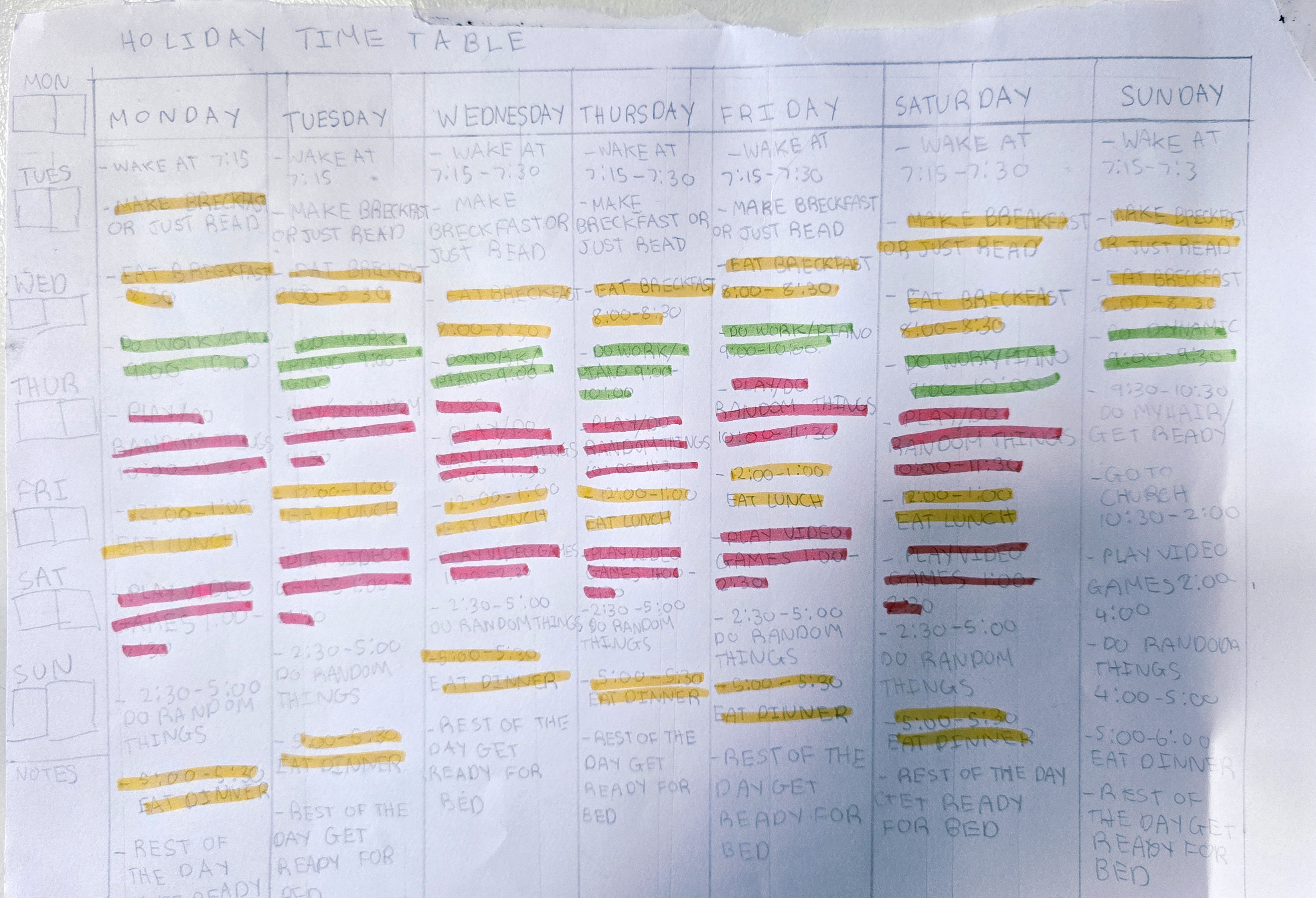 다래 방학 일과표.