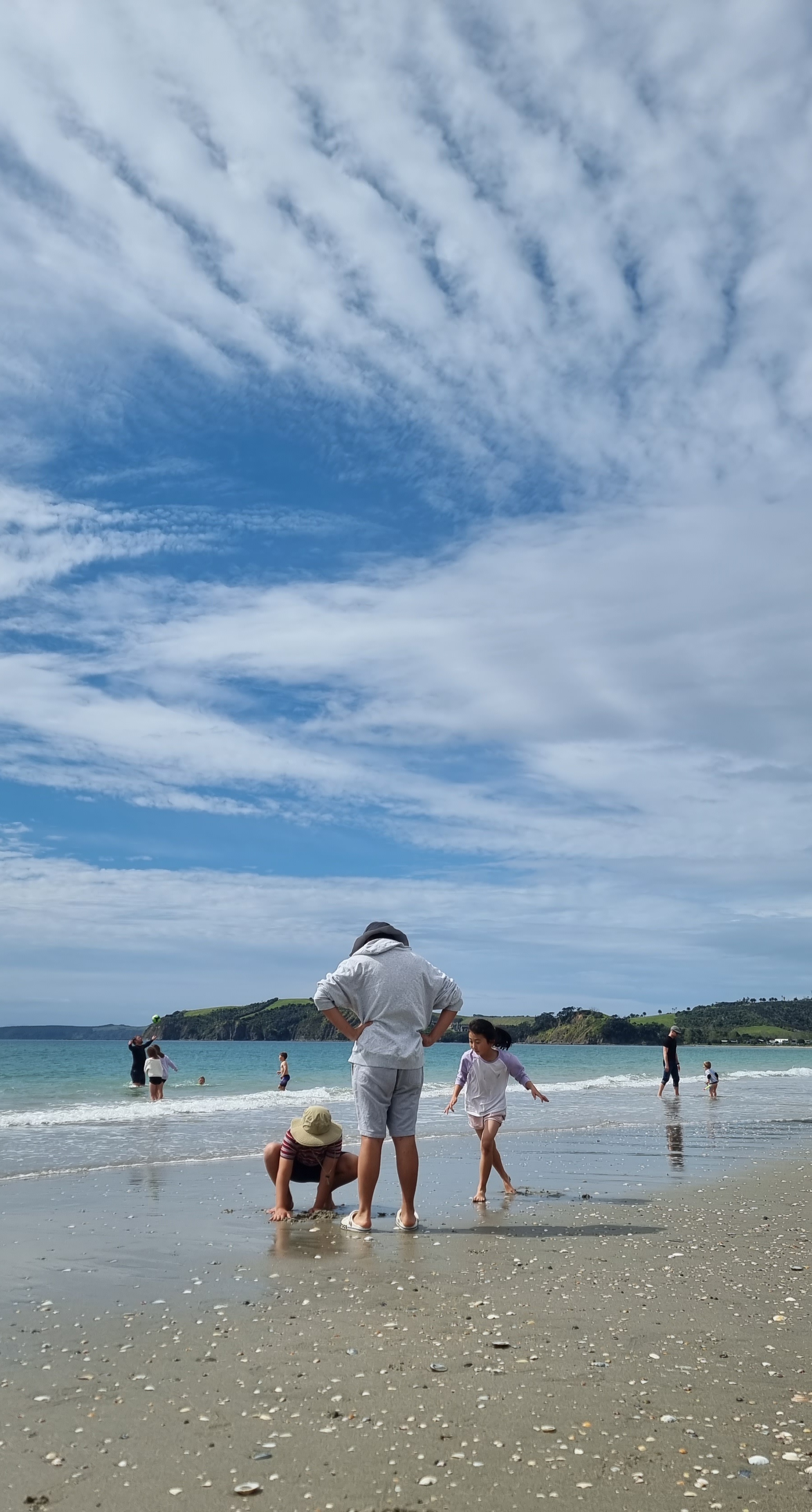 이번에는 10분 정도 운전해서 근처에 있는 Omaha beach 오마하비치로 간다. 초승달 모양으로 백사장을 끼고 있는 이곳은 오클랜드 중심 부촌을 떠오르게 할 만큼 정돈된 곳인데 올 때마다 약간 비 현실적 느낌이 든다. 한낮에 가까워지니 햇살이 제법 따갑다.
