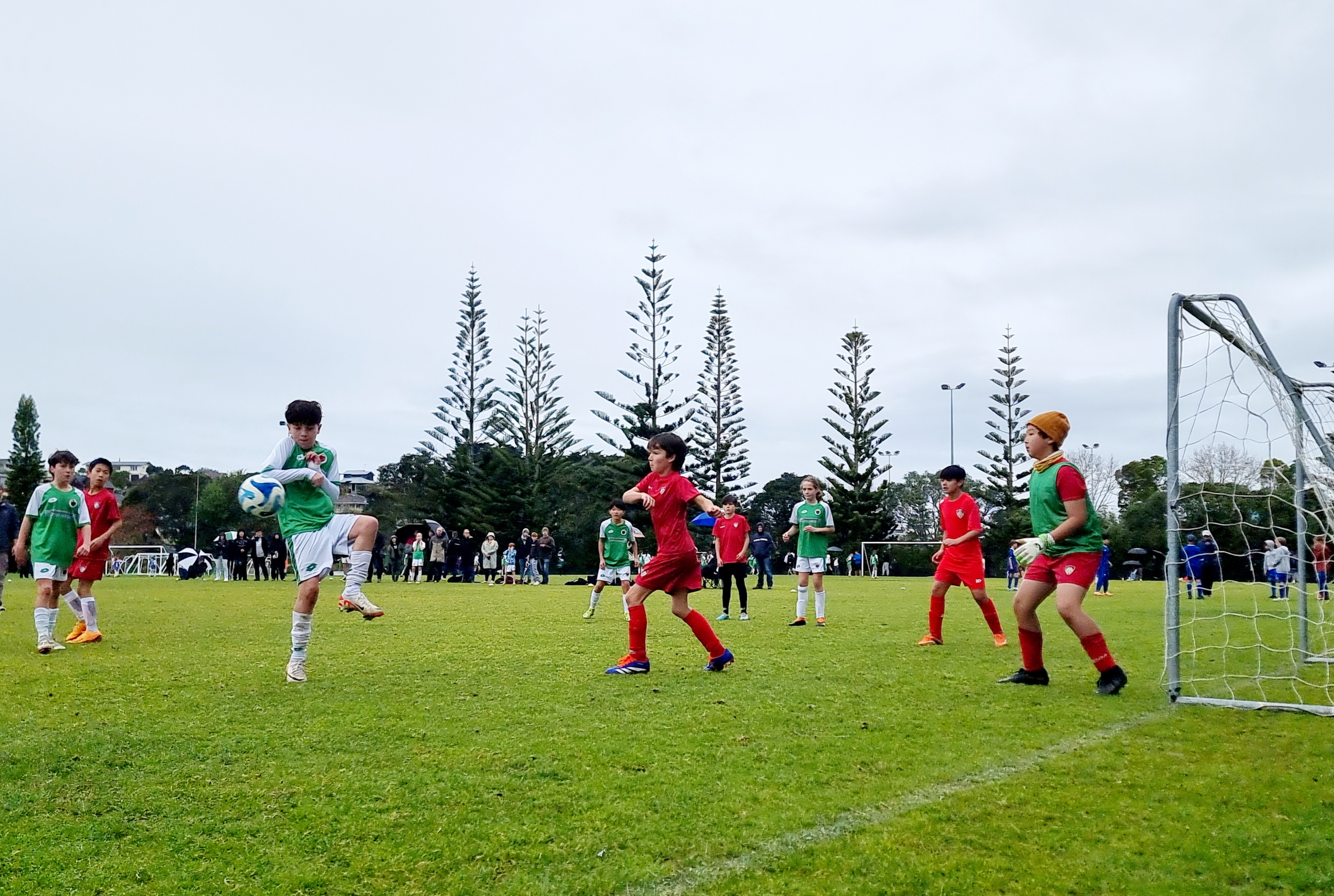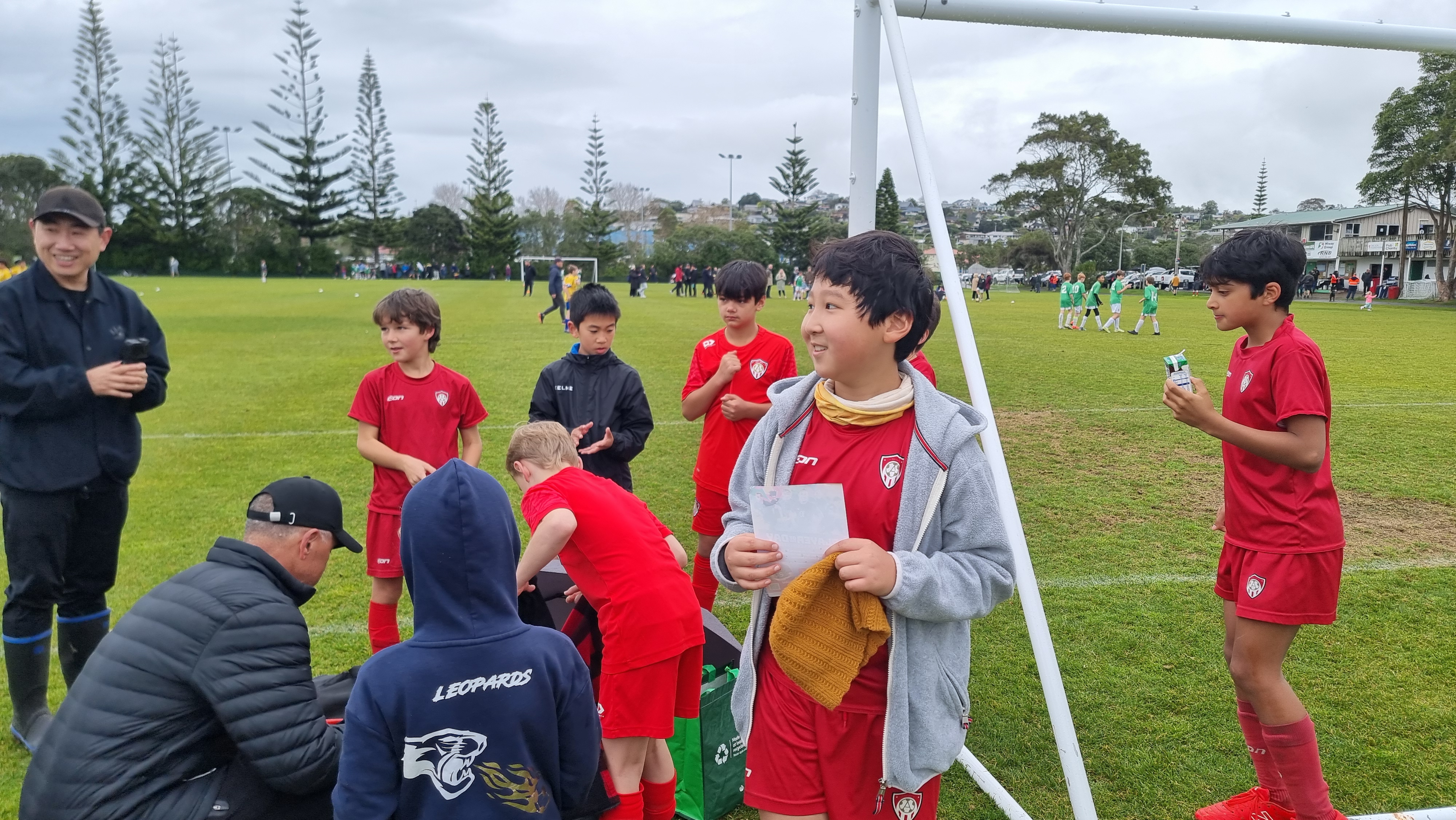 스탠모어 베이 공원 Stanmore Bay Park 주차장은 이미 자동차가 가득이다. 8시 이전에 게임을 시작한 9살 미만 게임이 끝나고서야 빈자리가 보인다. 다민이는 10시 게임을 앞두고 경기장에서 친구들과 몸풀기를 한다.