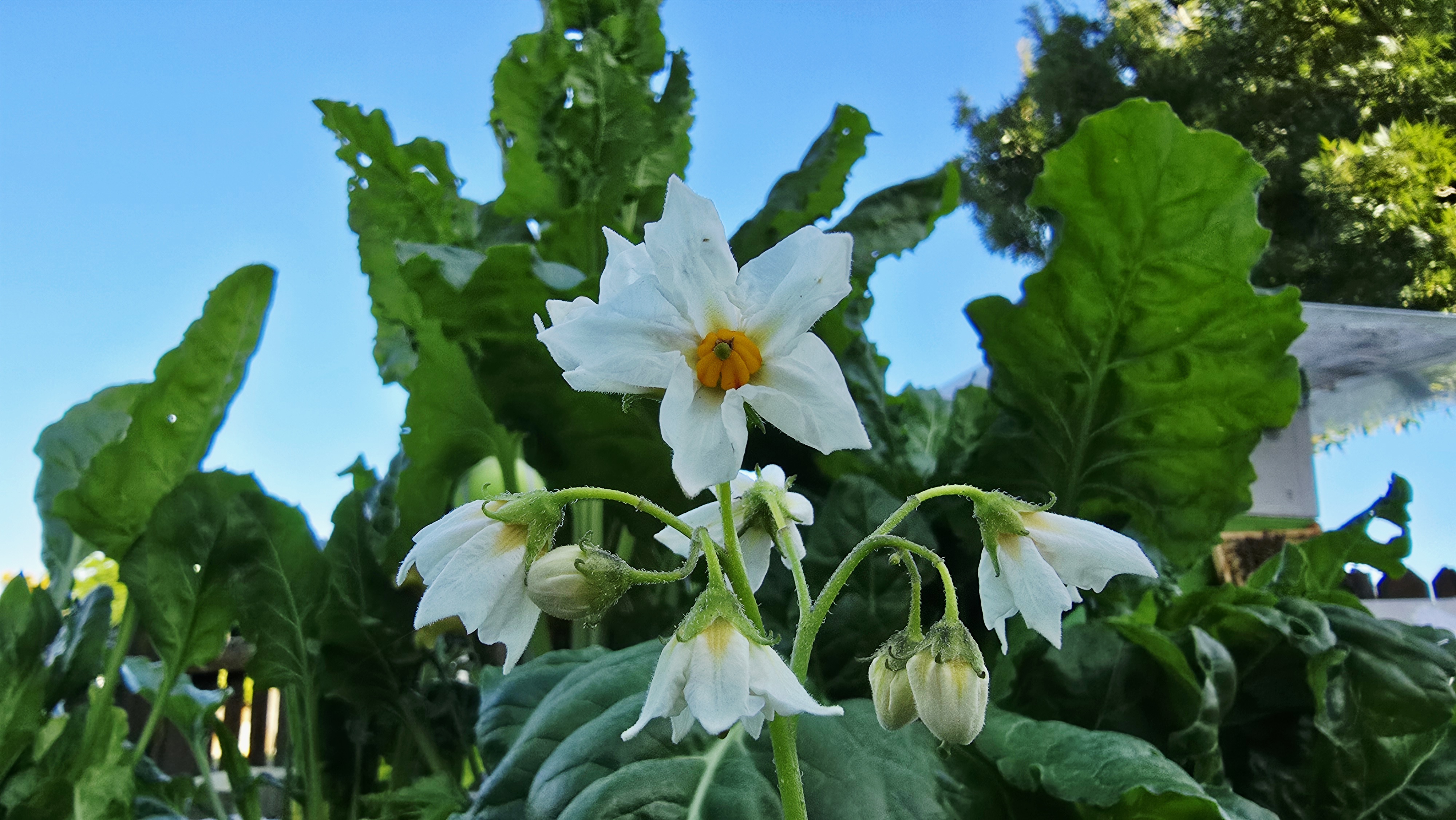 며칠 거친 날씨가 계속되었다. 따갑던 태양과 싸웠는지 햇살이 한결 부드러워진 듯 하다. 지난주부터 피어나던 감자꽃이 아침마다 같은 모습으로 다시 꽃잎을 연다.